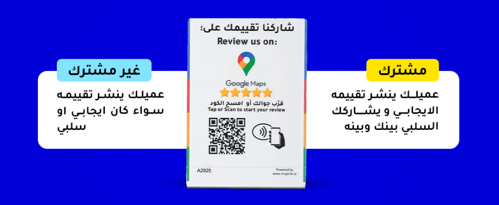 تقييم قوقل ماب الذكي هو خدمة من مجرب توجيه العملاء الراضين إلى صفحة التقييم على قوقل ماب ، بينما يتم توجيه العملاء غير الراضين لتقديم ملاحظاتهم بشكل خاص، بينك وبينهم.
